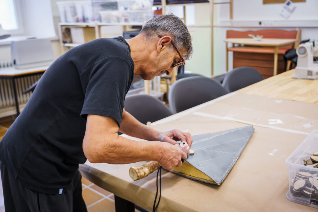 Upcycling in der Werkstätte: Herstellen von Produkten wie Karten oder Design- und Dekoartikeln sowie Näharbeiten.